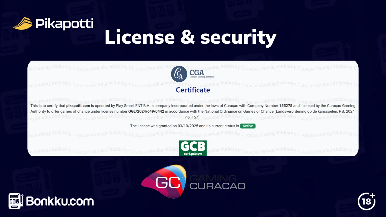 Yes. Pikapotti is a licensed and regulated online casino operating under a Curacao eGaming license, managed by Playsmart Ent BV.