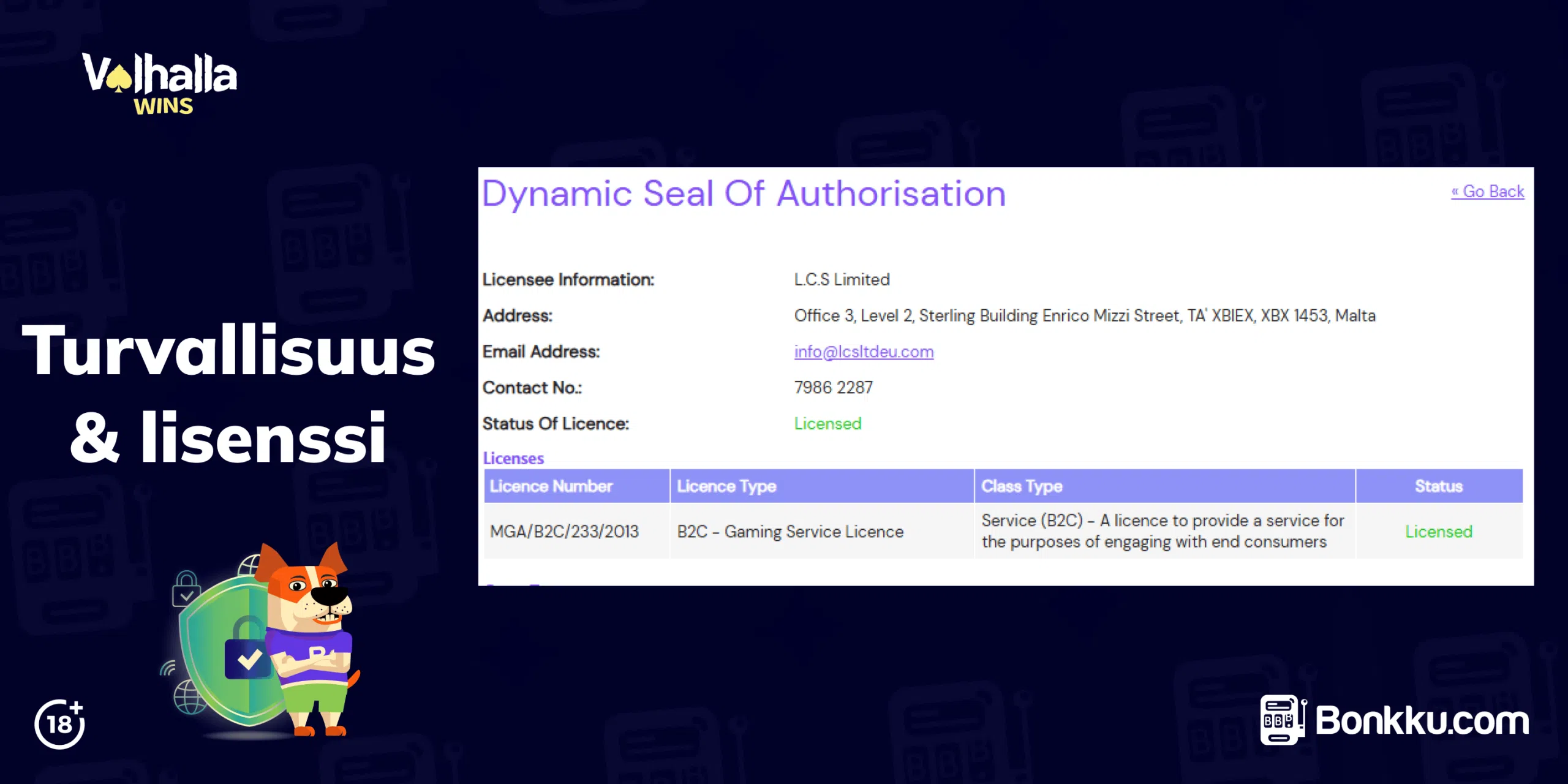Valhalla Wins toimii Maltan peliviranomaisen (MGA) valvonnassa, lisenssinumerolla MGA/B2C/233/2013, ja sitä operoi L.C.S. Limited.
